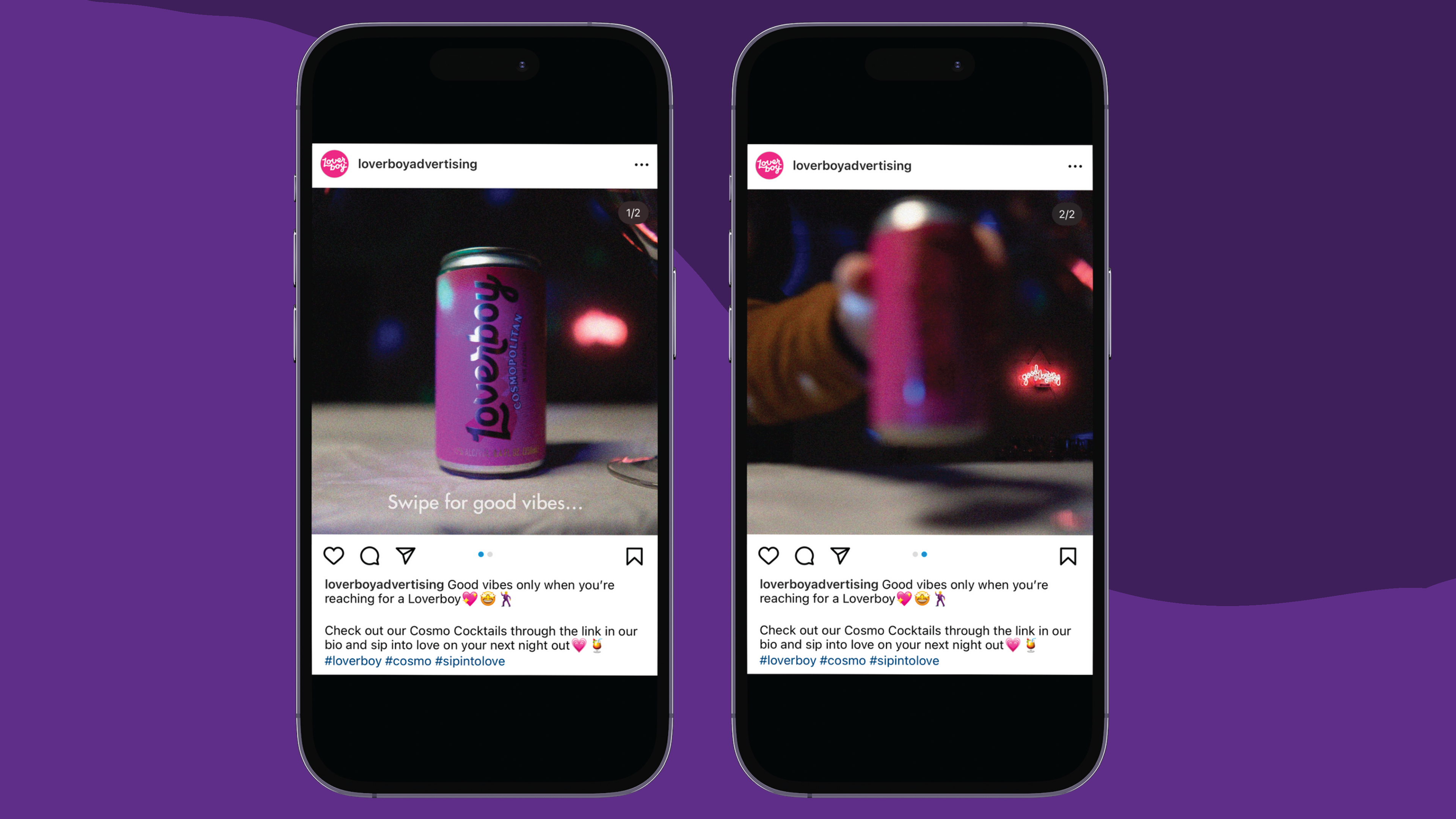 With the help of my team (below), we created a full advertising campaign for the drink company Loverboy, including print and social media deliverables. In the role of Art Director, I helped with the photography, graphic design, and general art direction of both printed and social media materials.